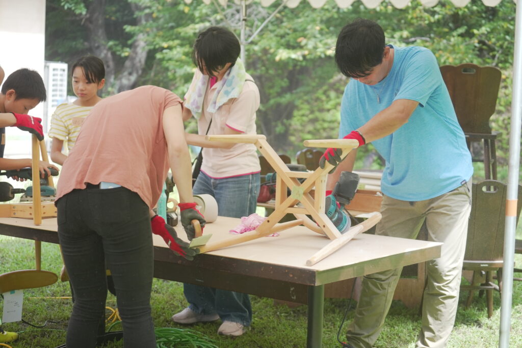 - 資源の回収と再生:島内で使われなくなった約360点の家具、約80kgの古着、建築廃材を回収し、職人・町民・子どもたちとリメイク。